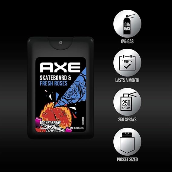 Axe Pocket For Men Skateboard & Fresh Roses 17ML delivers a bold and fresh fragrance in a compact, travel-friendly size. Combines energetic notes with a soft floral twist for a unique masculine scent. Designed to keep you smelling fresh anytime and anywhere. Perfect for quick touch-ups throughout the day. Easy to carry, lightweight, and ideal for pockets or bags. Suitable for active men who want freshness on the go.