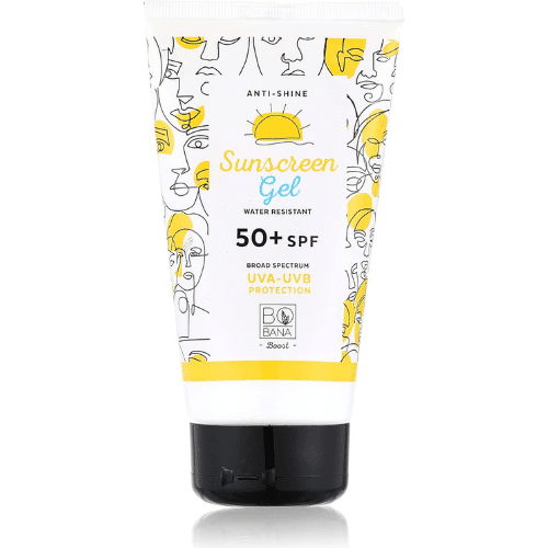 Bobana Sunscreen Gel SPF +50 is water-resistant, protects skin from harmful UV rays, and leaves it soft and non-greasy.