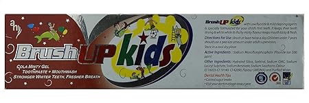 Brush Up Cola Mint Gel Toothpaste - 70 gm offers a unique cola and mint flavor for a fun brushing experience. Effectively cleans teeth while protecting gums. Helps prevent plaque buildup and maintain oral hygiene. Leaves breath fresh and invigorating. Gentle on enamel and suitable for daily use. Perfect for kids and adults who enjoy flavored toothpaste.