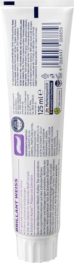 Dontodent Toothpaste Brilliant White - 125 ml delivers effective whitening while providing gentle care for your teeth. Helps remove surface stains for a brighter smile. Promotes healthy gums and prevents plaque buildup. Leaves breath fresh and long-lasting. Suitable for daily use and gentle on enamel. Ideal for those seeking a natural and radiant smile.