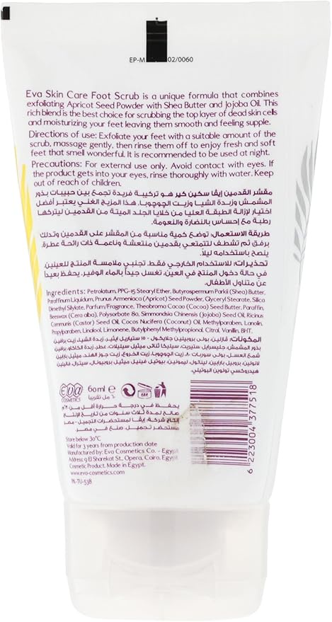 Eva Tropical Foot Scrub gently exfoliates dead skin, smooths cracked heels, and deeply moisturizes to restore softness and freshness with a long-lasting tropical scent.