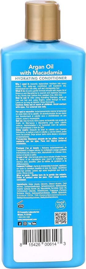 Every Strand Argan Oil with Macadamia Hydrating Conditioner is enriched with natural oils to deeply moisturize dry and damaged hair. This nourishing formula restores softness, reduces split ends, and enhances shine, leaving your hair smooth, manageable, and hydrated with a healthy glow.