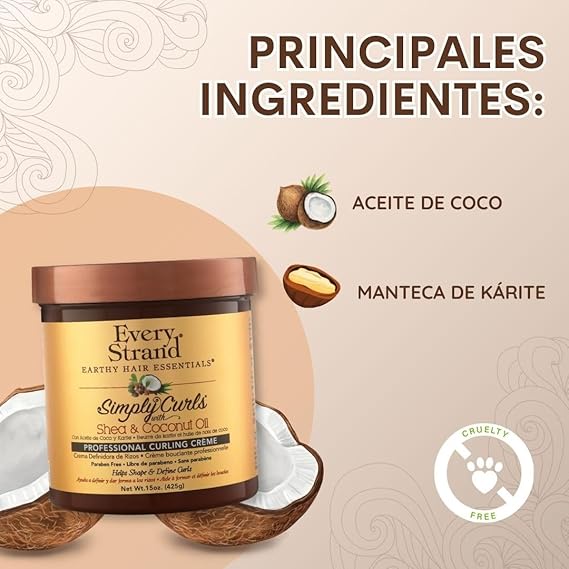 Every Strand Simply Curls Coco Oil & Shea Curl Creme provides deep hydration and defines natural curls while controlling frizz. Enriched with coconut oil and shea butter, it nourishes hair from root to tip, leaving curls soft, shiny, and beautifully bouncy without weighing them down.