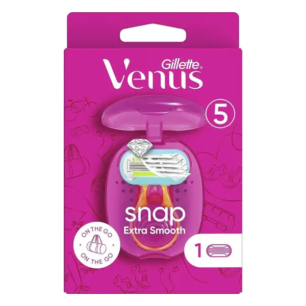 Gillette Venus Snap Extra Smooth 5 Blades, 1 Pcs offers a compact and travel-ready solution for smooth and precise shaving. Its five ultra-thin blades glide easily across curves, ensuring close contact with the skin for a clean shave. The moisture-rich strip provides extra glide while reducing irritation and dryness. Lightweight and ergonomic, the razor fits comfortably in your hand and is perfect for on-the-go use. Designed for women seeking convenience without compromising shaving quality. Achieve silky, smooth skin anywhere, anytime.