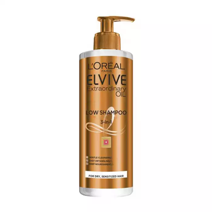 L'Oreal Elvive Extraordinary Oil Low 3in1 Shampoo cleanses, nourishes, and hydrates hair in one step. Its lightweight oil formula penetrates deeply to restore softness and shine. The shampoo strengthens hair and reduces dryness, leaving it smooth and manageable. Suitable for all hair types, including dry or damaged hair. Enriched with nourishing oils, it improves hair health and elasticity. Leaves hair silky, healthy, and beautifully radiant after every wash.