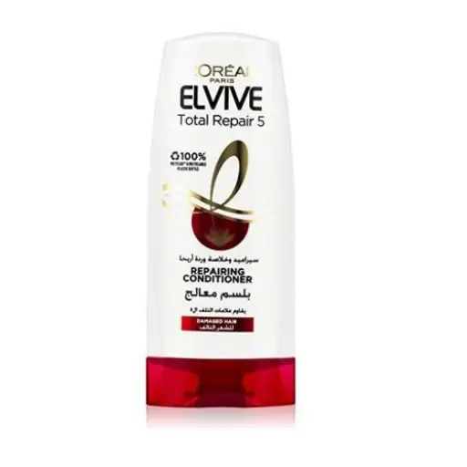 يقوم L’Oréal Paris Elvive Total Repair 5 Repairing Conditioner بعلاج خمسة مشاكل للشعر التالف: الأطراف المتقصفة، الضعف، الخشونة، فقدان اللمعان، والتكسر. تركيبته الغنية تغذي وتقوي خصل الشعر. يقلل الهيشان ويعيد النعومة ويزيد اللمعان الطبيعي. مناسب لجميع أنواع الشعر وخاصة التالف أو المعالج كيميائيًا. يساعد على منع التلف المستقبلي ويحسن سهولة التحكم بالشعر. يترك شعرك صحيًا، ناعمًا ومرتاحًا بشكل رائع بعد كل استخدام.