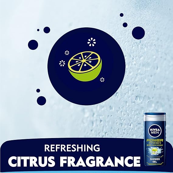 NIVEA MEN 3in1 Shower Gel Body Wash Power Fresh provides complete care for body, face, and hair. Its energizing citrus formula delivers a refreshing and long-lasting 24-hour effect. Gentle yet thorough, it cleanses without drying the skin. The shower gel invigorates, leaving you feeling revitalized and confident. Suitable for daily use, it maintains skin hydration while leaving a subtle, fresh fragrance. Perfect for men who want a convenient, refreshing, and all-day fresh experience.