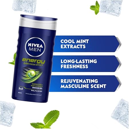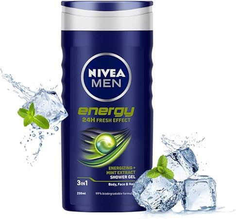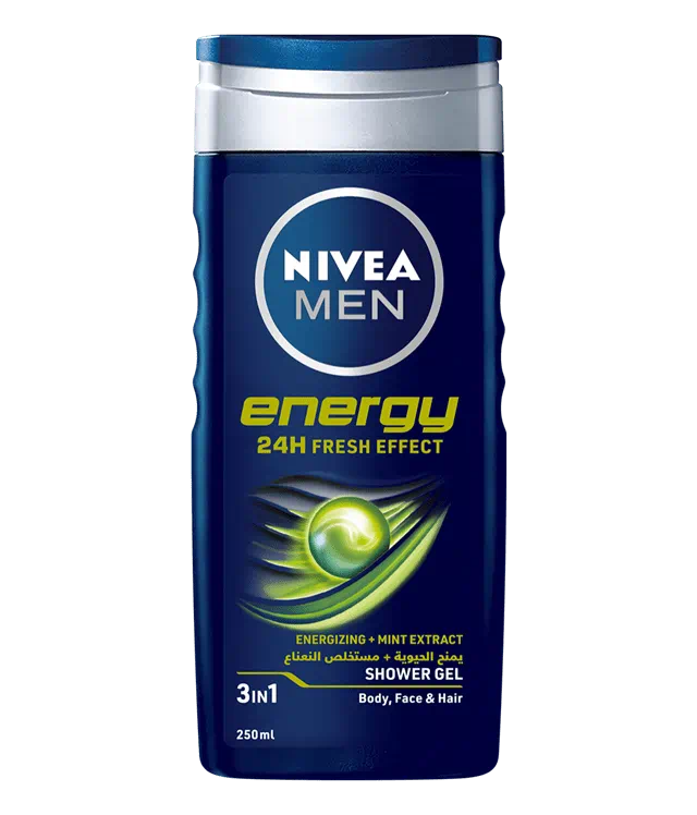NIVEA MEN 3in1 Shower Gel Energy provides an all-in-one solution for body, face, and hair. Its invigorating formula delivers long-lasting freshness and a masculine scent for up to 24 hours. Gentle yet effective, it cleanses thoroughly without drying the skin. The gel energizes and revitalizes, giving a refreshing start to your day. Suitable for daily use, it maintains skin hydration while leaving a subtle, fresh fragrance. Perfect for men seeking convenience, freshness, and all-day confidence.