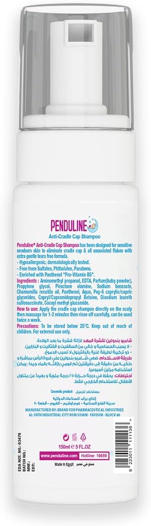 يوفر Penduline Anti Cradle Cap Shampoo - 150 ml تنظيفًا لطيفًا وتهدئة لفروة رأس الأطفال. يساعد على تقليل قشرة الرأس بفعالية. يمنح فروة الرأس والشعر ترطيبًا لصحة أفضل. يترك الشعر ناعمًا ولامعًا وسهل التسريح. مناسب للاستخدام اليومي ولطيف على البشرة الحساسة. مثالي للآباء الذين يبحثون عن عناية فعالة لفروة رأس أطفالهم وشعرهم.