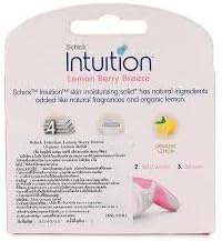 Schick Intuition Lemon Berry Breeze Refill Blade Cartridges 3-Pieces Set delivers a refreshing and moisturizing shaving experience for women with sensitive skin. Each blade features a built-in moisturizing strip that releases gentle hydration while gliding smoothly over the skin. The unique scent of lemon berry adds a subtle, invigorating fragrance during each shave. Designed to reduce irritation and leave the skin feeling soft and smooth. Compatible with all Intuition razor handles for convenience and easy replacement. Ideal for women seeking a fresh, comfortable, and effective shaving routine.