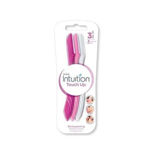 Schick Intuition Touch Up Dermaplanning Eyebrow Razors - 3 Razors + Precision Cap are designed for precise eyebrow shaping and grooming. Each razor features a sharp, gentle blade for smooth and controlled trimming. Comes with a precision cap to ensure safety and maintain blade quality. Perfect for touch-ups and removing fine facial hair with ease. Lightweight and travel-friendly, ideal for on-the-go grooming. Provides women with accurate, safe, and professional-looking results every time.