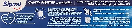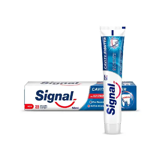 Signal Toothpaste Cavity Fighter - 50ML helps protect teeth against cavities while providing deep cleaning. Strengthens enamel and supports healthy gums. Leaves breath fresh and clean after brushing. Suitable for daily use and gentle on teeth. Helps maintain overall oral hygiene. Ideal for those seeking strong cavity protection with a refreshing feeling.