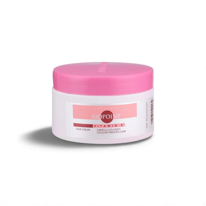 Biopoint Vitamin E Hair Mask nourishes hair with Vitamin E, providing deep hydration, shine, and protection from damage.