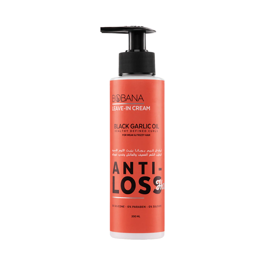 Bobana Leave-in Cream with Black Garlic strengthens weak hair, reduces hair fall, and leaves it soft, shiny, and easy to style.