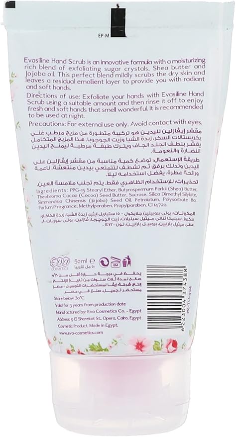 Eva Hand Scrub Evasline gently exfoliates dry skin, removes roughness, and deeply hydrates the hands, leaving them soft, smooth, and refreshed.