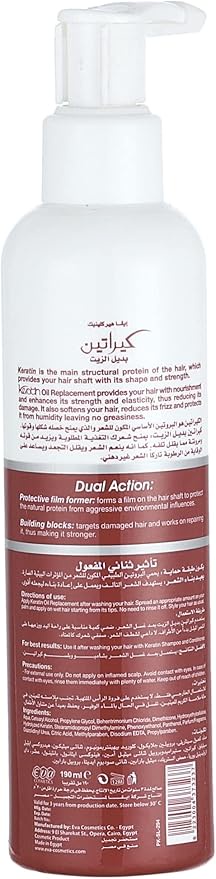 Eva Keratin Oil Replacement Intensive Repair deeply nourishes and repairs damaged hair, leaving it soft, shiny, and protected from breakage.